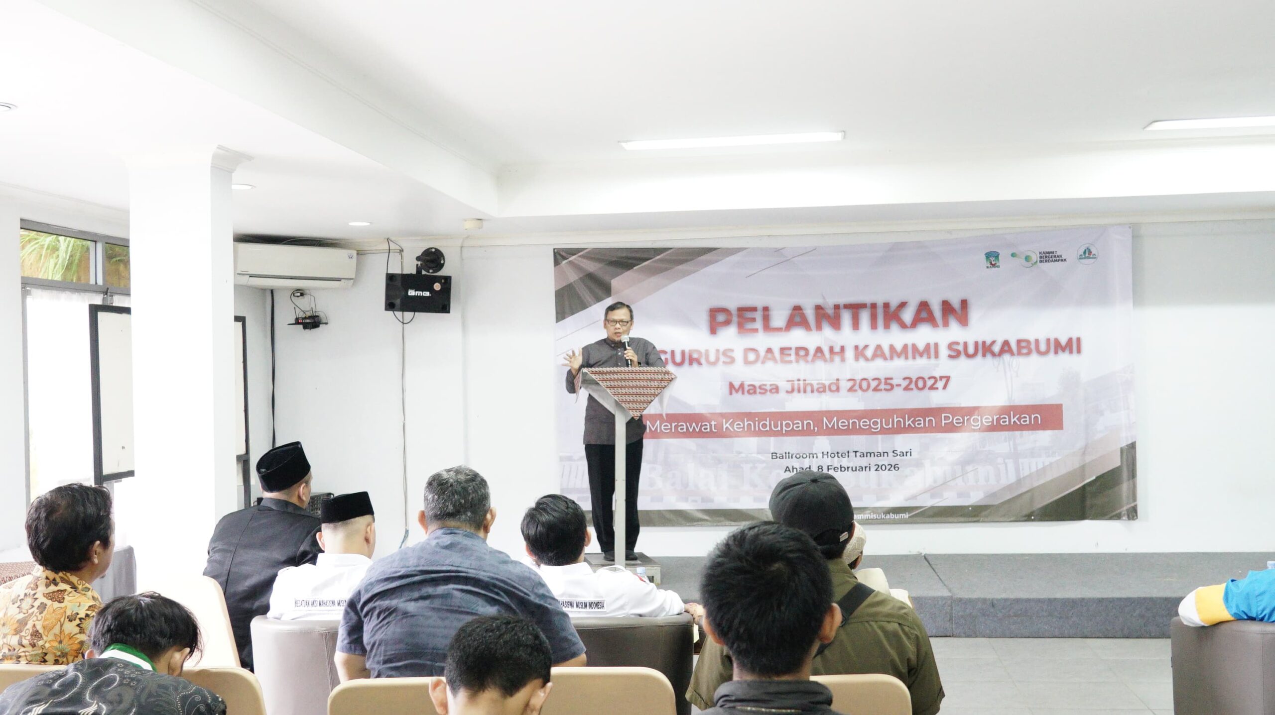 Ketua DPRD Kota Sukabumi Wawan Juanda SH pada Minggu, 08 Februari 2026 menghadiri Pelantikan Pengurus KAMMI Sukabumi Masa Jihad 2025 – 2027 di Ballroom Hotel Taman Sari Kota Sukabumi.
