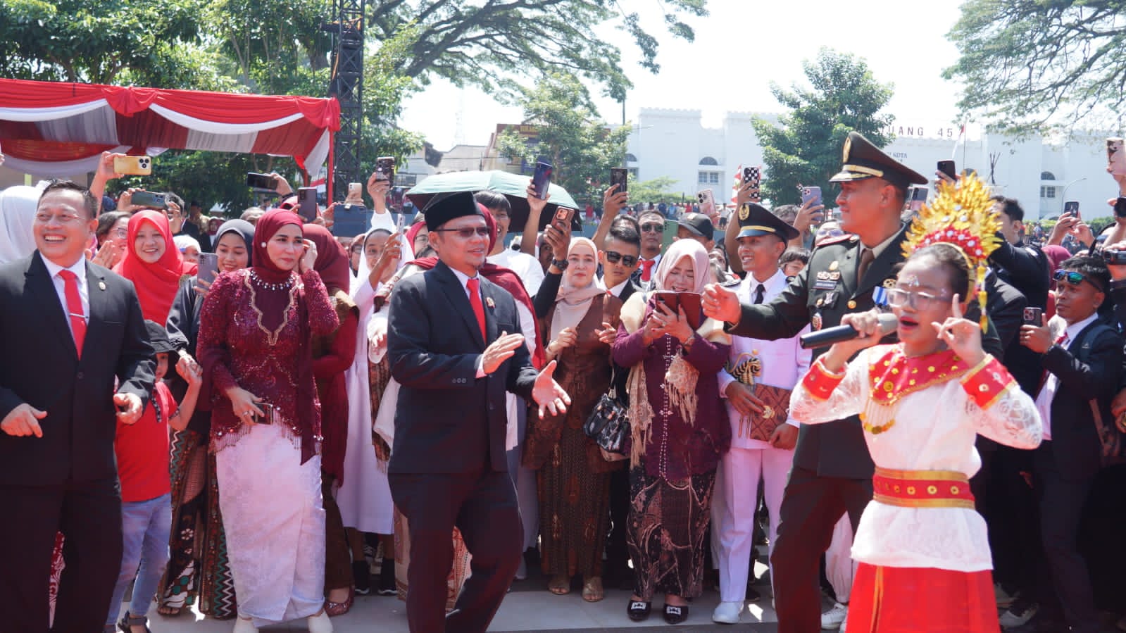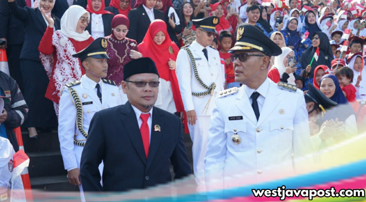 dalam Upacara Peringatan HUT RI Ke 80 Tahun, selain Walikota dan Wakil Walikota Sukabumi yang menjadi pemimpin Upacara, juga Ketua DPRD Kota Sukabumi Wawan Juanda SH pun menjadi bagian dari satu jajaran para pelaksana pimpinan upacara yang duduk di podium bersama jajaran Forkopimda lainnya.